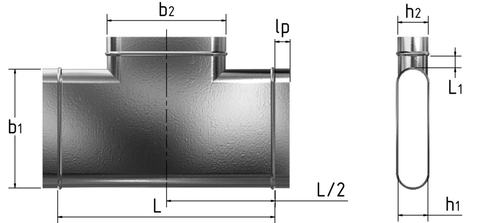 m+a Abzweig ATHO oval, horizont., b1xh1=1110x300mm, für Abzweig b2xh2=1110x300mm, Einbaulänge=1210mm