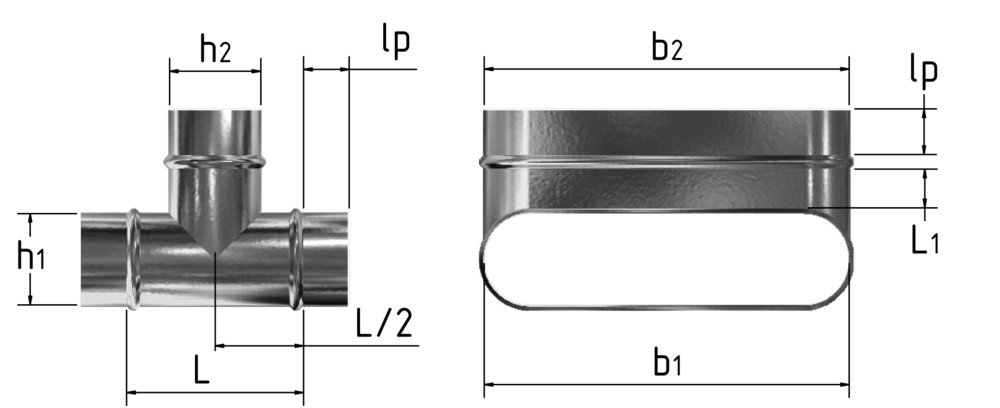 m+a Abzweig ATVO oval, vertikal, b1xh1=310x150mm, für Abzweig b2xh2=310x150mm, Einbaulänge=250mm 11392604 99542