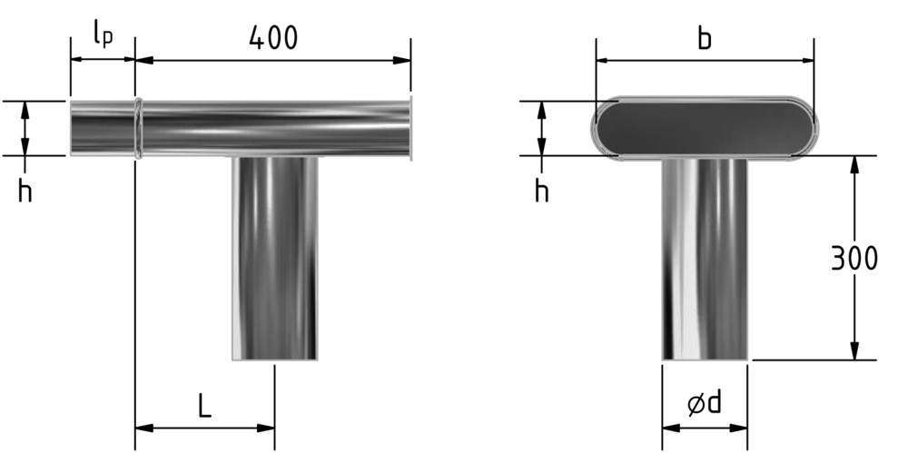 m+a Anschlussstück KWL-ASS rund-oval, BxH=320x80mm, Durchmesser=160mm, Einbaulänge=265mm