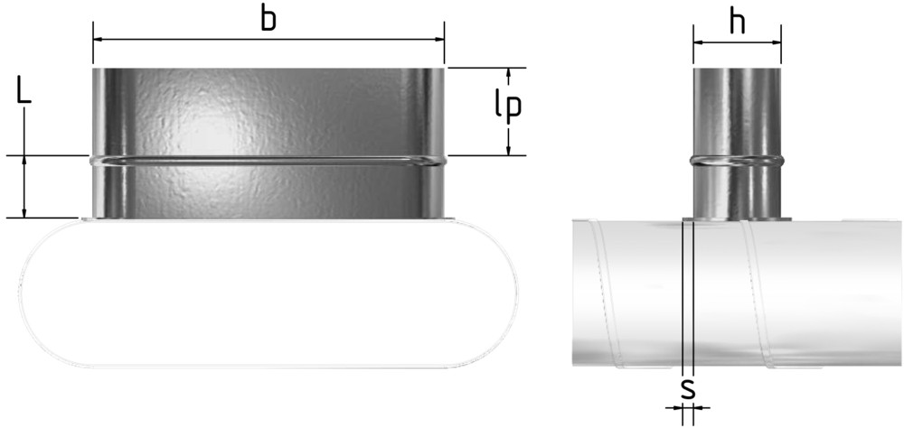 m+a Anschlussstutzen ASTO oval 90°, BxH=450x200mm, Einstecktiefe=80mm