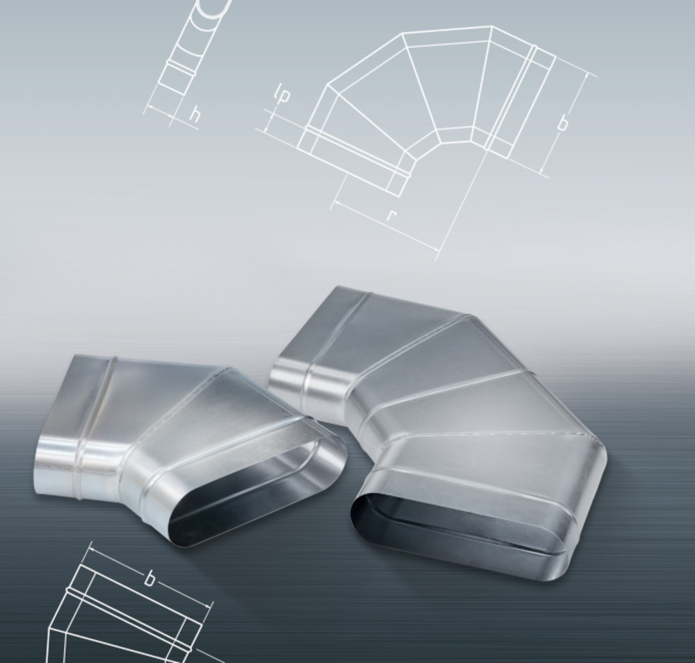 m+a Bogen 90° BHSO oval, horizontal, BxH=960x150mm, Einstecktiefe=90mm