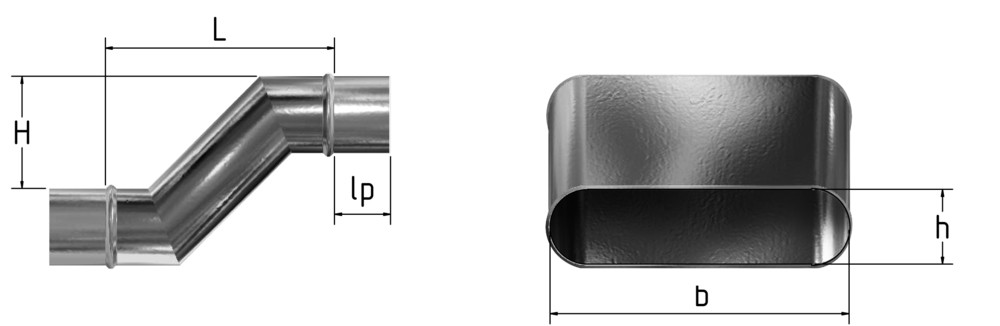 m+a Etage ETGVO oval, vertikal, BxH=710x150mm, Einbaulänge=412mm, Versprunghöhe=250mm