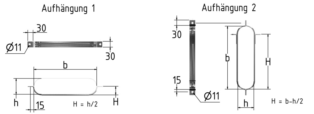 m+a Ovalschelle OS, Aufhängung horizontal, BxH=950x300mm