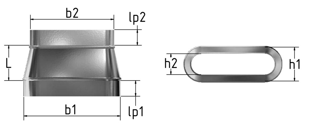 m+a Reduzierung USO oval-oval, symm., b1xh1=940x450mm auf b2xh2=700x450mm, Einbaulänge=275mm
