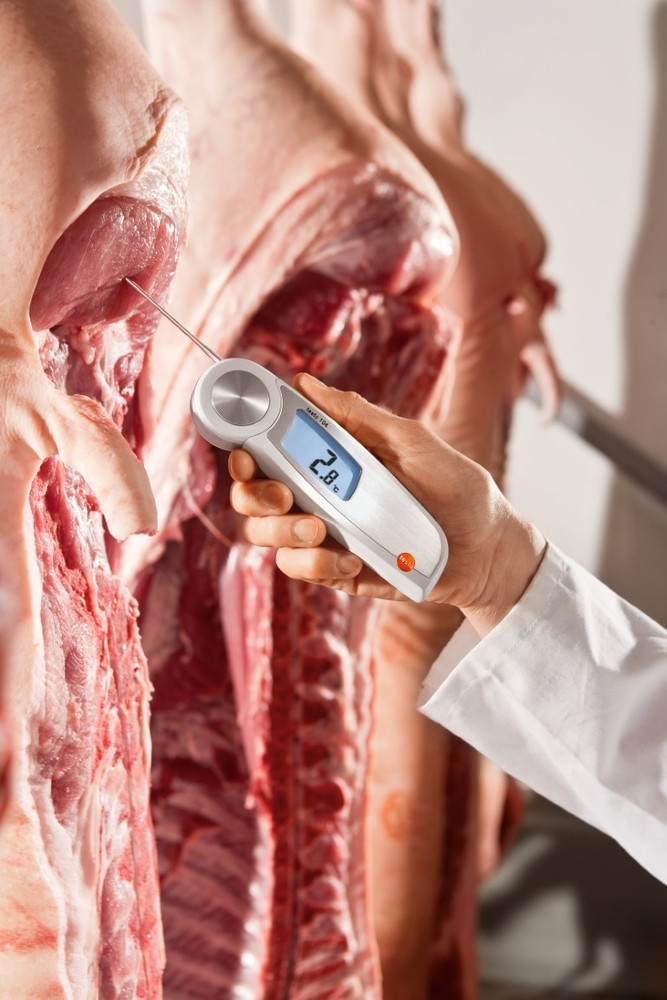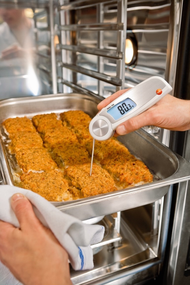 Testo präsentiert das erste wasserdichte Klappthermometer für die Lebensmittelbranche: das testo 104.Praktischer Klappmechanismus mit robustem Metallklappgelenk, handlich, sofort einsatzbereit Produktvorteile: Abwaschbar unter fließendem Wasser nach Schutzklasse IP65 Automatische Endwerterkennung (Auto-Hold) und Min-/Max-Speicher für die mit Hold/Auto-Hold gemessenen Werte Optimal für Lebensmittel: HACCP-konform, zertifiziert nach EN 13485