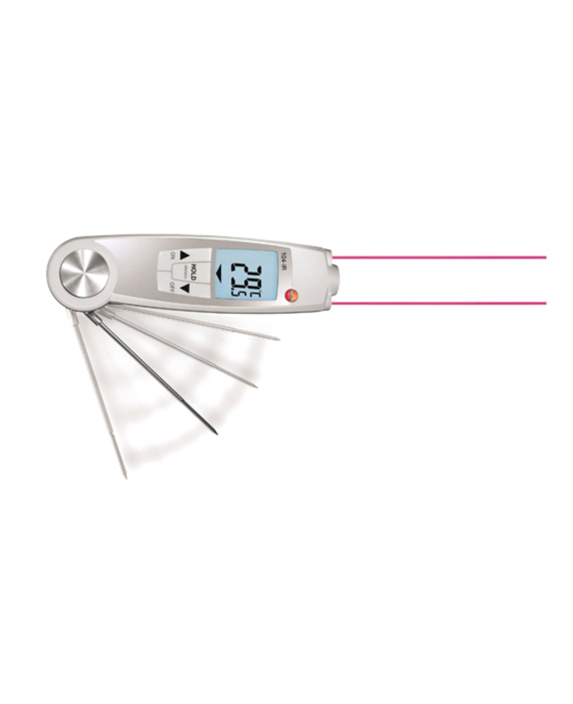 Wareneingang, Theken-Auslage, Lagerung: Das Einstech-Infrarot-Thermometer testo 104-IR wurde für die schnelle, zuverlässige Temperaturkontrolle im hektischen Praxisalltag entwickelt. Es eignet sich ideal für die Lebensmittelindustrie, für Restaurants und den Einzelhandel.Robust und praxistauglich: stabiles Klappgelenk, wasserdichtes Gehäuse (IP65), passt in die Jackentasche Produktvorteile: Oberflächentemperatur und Kerntemperatur messen Infrarot-Messgerät mit Laser-Messfleckmarkierung und Einstechfühler HACCP / EN 13485 konform