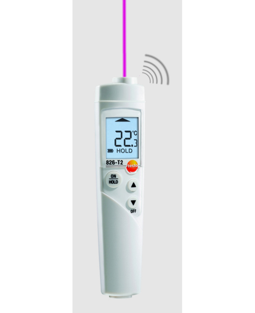 Zur Qualitätssicherung von Lebensmitteln sind im Wareneingang und in der Lebensmittelproduktion Temperaturkontrollen vorgeschrieben. Mit dem Infrarot-Thermometer testo 826-T2 messen Sie die Temperatur Ihrer Waren und Warenpaletten zerstörungsfrei und sekundenschnell.Grenzwertüberwachung durch Min-/Max-Funktion, optischer und akustischer Alarm bei Grenzwertüberschreitung Produktvorteile: 6:1-Optik und 1-Punkt-Laser-Messfleckmarkierung In Verbindung mit der Schutzhülle TopSafe ist das Gerät EN 13485 zertifiziert (TopSafe im Lieferumfang enthalten) Infrarot-Thermometer misst die Temperatur berührungslos und damit zerstörungsfrei