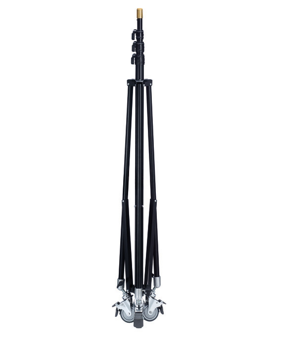 Ausschiebbares Stativ (bis 4 m) mit Rädern – ideal für Messung an Deckenauslässen. Die Räder können sehr leicht fixiert werden.