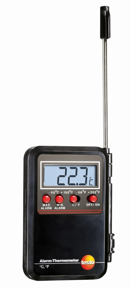 Das preisgünstige, Mini-Thermometer mit Min-/Max-Alarm. Klein in der Größe, groß in der Leistung: Bei Über- bzw. Unterschreitung der individuell einstellbaren Grenzwerte ertönt ein akustisches Signal.Einstellbarer Min-/Max-Alarm Produktvorteile: Fest angeschlossener Fühler Mit Clip zum Aufstellen, zur Wandmontage oder zum Anstecken Messbereich: -20 bis 150 °C